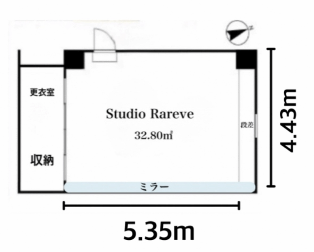約33㎡で快適にご利用いただけます。大型鏡、フローリング、スピーカーやリングライトやヨガマットなど無料備品も充実予定。