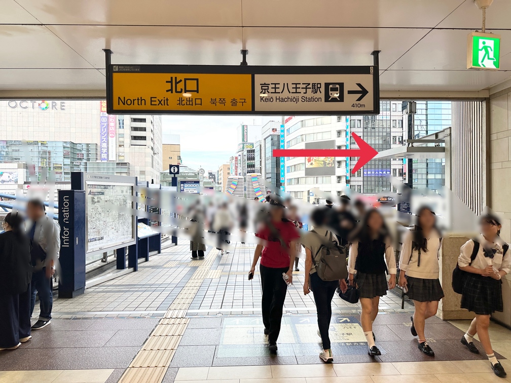 北口に出ます。『京王八王子駅→』という案内表示に沿って進みます。