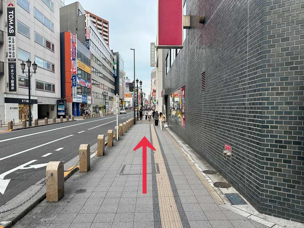 京王八王子駅を通り過ぎ、信号を渡るとすぐ見える【たましんATM】手前を右に曲がります。